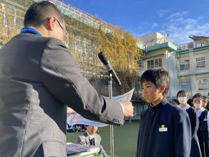 この時、学年関係なく、表彰者一人ひとりを撮影してくださっている先生がいらっしゃいました。