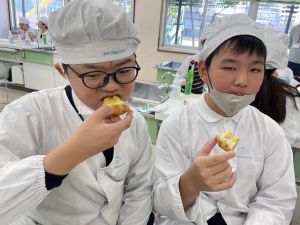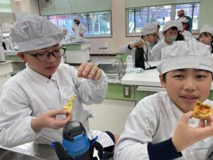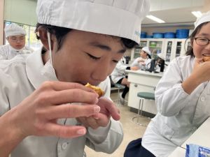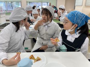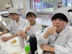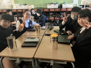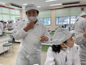 今日が授業終了日でした!最後の最後まで駆け抜けた1日でした!今日、3組の試食会が終わり、3クラスの試食会が終わりました!!来年の商品化に向けてあと、一歩です!!