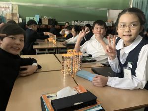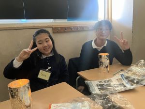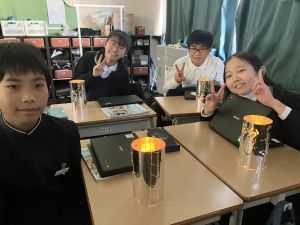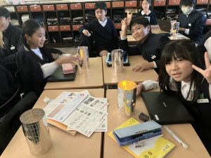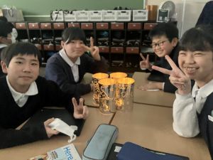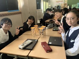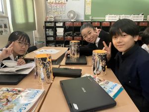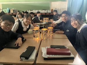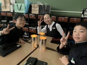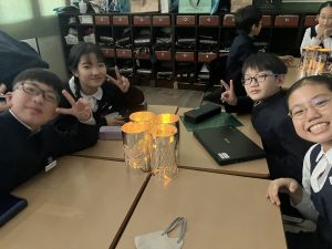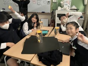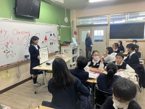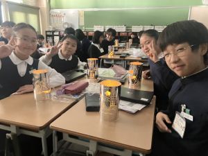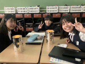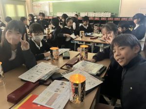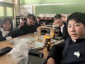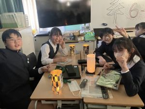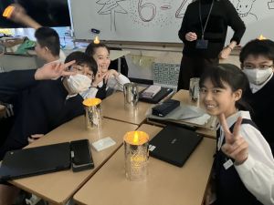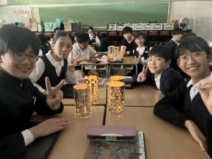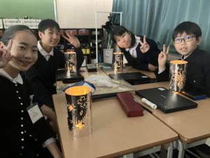 ・外国語の授業では、Christmas Partyと題しての「プチお楽しみ会」をしました!!「英語を使ったレクリエーション」というルールで、各クラスで考えたレクリエーションを楽しみました。Angela先生へのサプライズとして、図工で作った行灯も光らせました!!寝る時にもぴったりですね!!