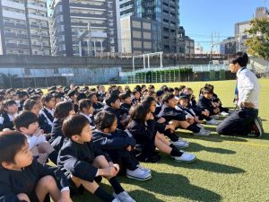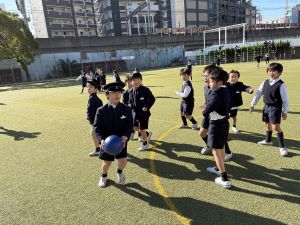 スポーツデーでは、長い夏の暑さを「149」の元気で吹き飛ばし、全力で踊り、タオルを回し続けました。本番では、次々と「生き物」を表現する楽しそうな笑顔が弾けていました。また、学年全員で挑んだ「大玉転がし」では、チームで協力し、真剣に勝利を目指す逞しい姿も見られました。来年はいよいよ中学年。スポーツデーを引っ張っていく存在としての成長が今から楽しみです