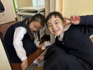 本日、大掃除のご協力ありがとうございました! お知らせ ◯冬休みについて ・宿題は、生活のプリント 町探検1枚と自分の成長インタビュー8枚、絵日記1枚、なわとびカードです。 ・自分の成長インタビュー8枚 ・1月19日(月)の持ち物については、また後日、ご連絡します。ぞうきん1枚だけご準備お願いします。 |
