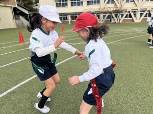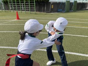 タグを使って真剣に勝負!! 友だちのタグを取ることができるように! 友だちにタグを取られないように!