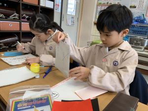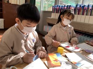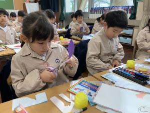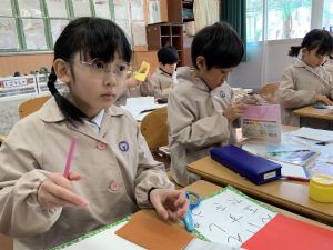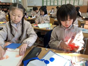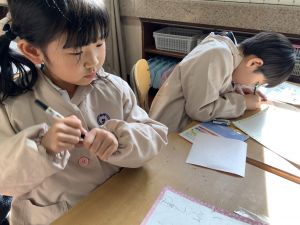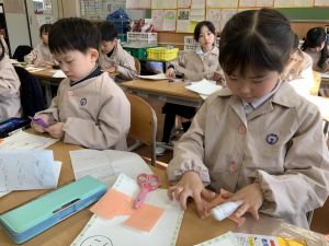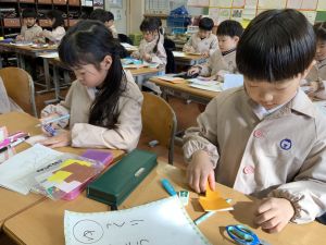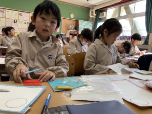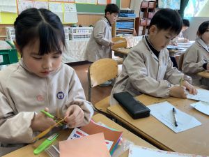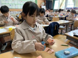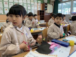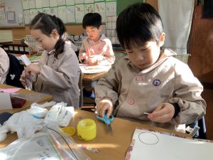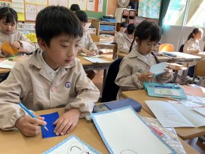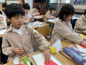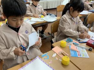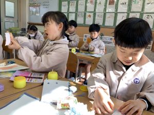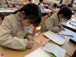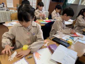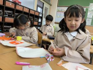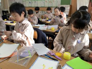 図画工作の時間,「むかしあそびカルタ」を製作中です。
