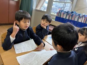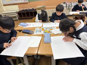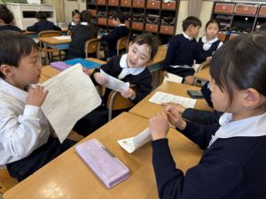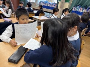 今日の授業でも、町たんけんで見つけたことをたくさん伝えたい!はやくみんなに紹介したい!という様子ばかりでした。