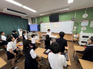 これまでは、授業の中で英語を話す相手は「友だち」でしたが、、、、