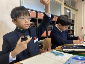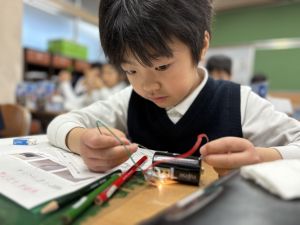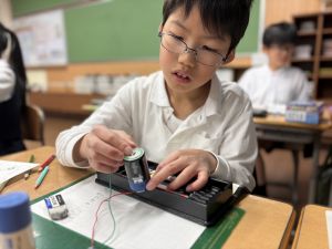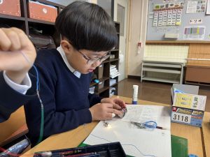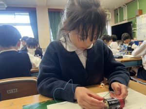 理科の学習では、電気で明かりをつけよう! の学習をしています。