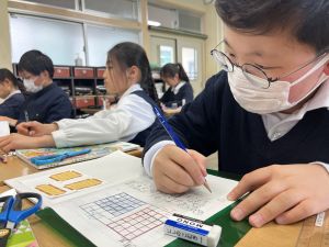 さて、算数は陣取りゲームをしました。うまい作戦は思いついたでしょうか?