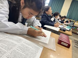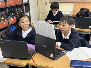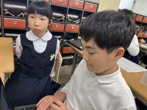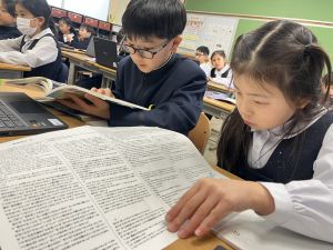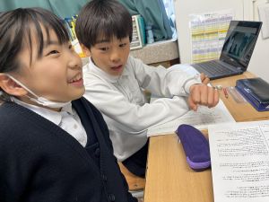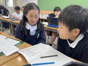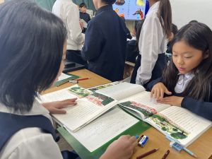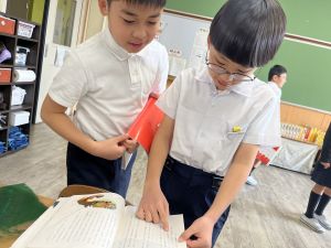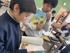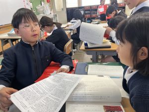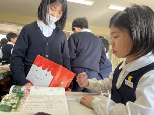 本文を読みながら、お友達とも話す姿が見られます。