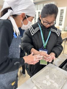 交流活動では、日本の文化を感じるめんこ作り、英語を使ったレクリエーション、そして白玉デザート作りに挑戦。短い時間でしたが、笑顔いっぱいの楽しいひとときとなりました。