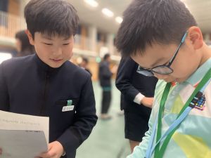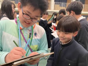 今日は、145期にとって最後の国際交流の日でした。香港から24名の子どもたちが来校してくれました。これまで何度も海外のお客さんを迎えてきた145期。学校紹介もとてもスムーズで、頼もしさを感じました。