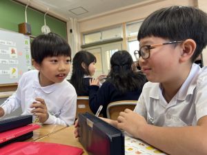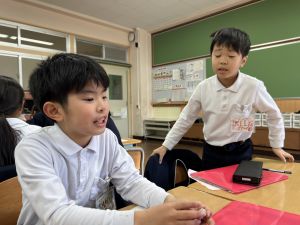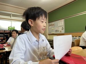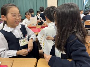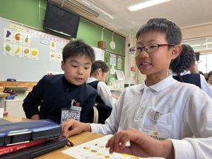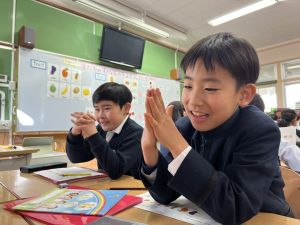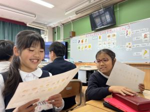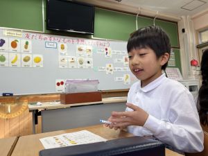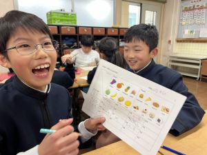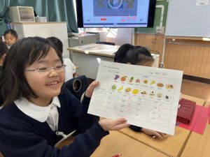 自分の好きな食べ物を伝えることはもちろん、友だちの好きな食べ物を予想してたずねることにも挑戦しました。