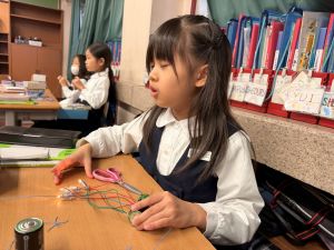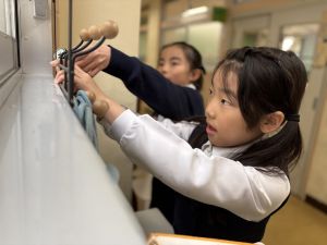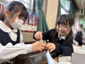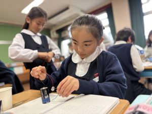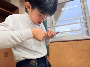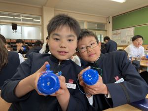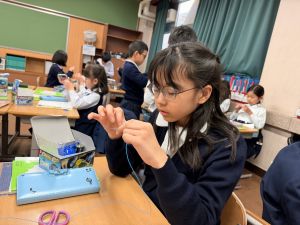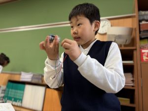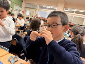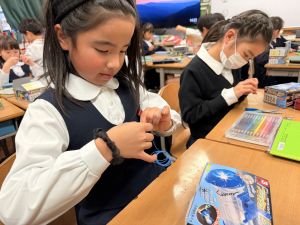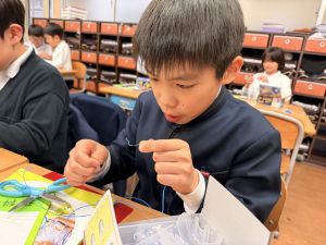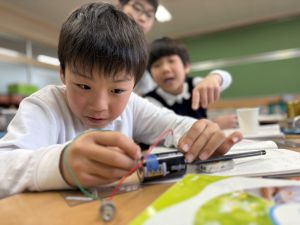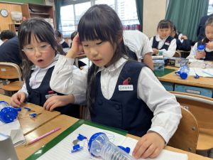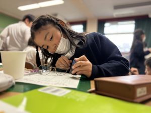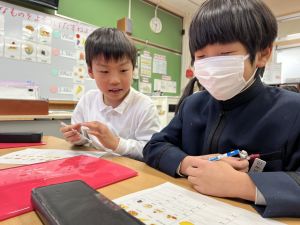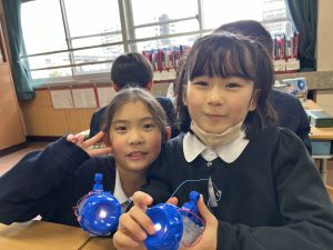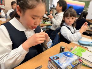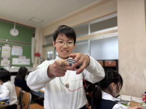 導線が、乾電池の+極・-極、豆電球に繋がっていると、回路が完成し、明かりがつくことを学んだ148。