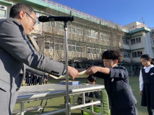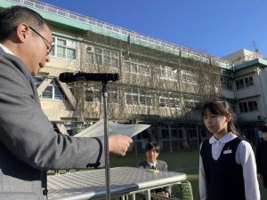 今日の朝礼では、3年生が3人、表彰されました。