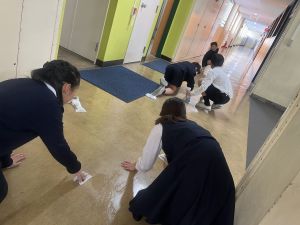 廊下を磨いてくださっている姿。