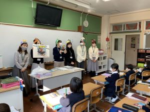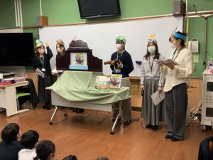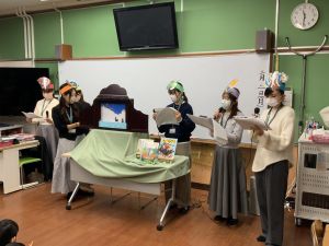 今日のメリータイム,1組にて読み語りの会がありました。