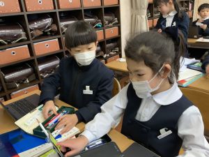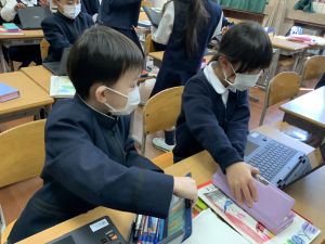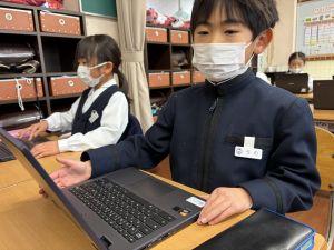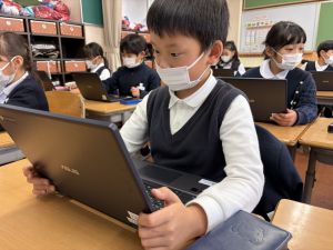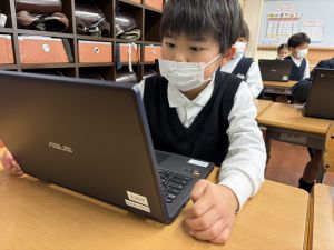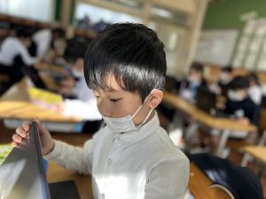 この自分の番号がついたChromebookは、これから6年生まで使う大切な道具になります。