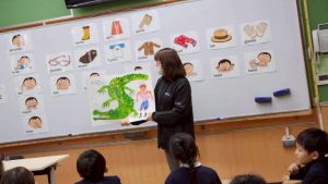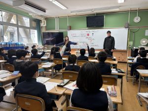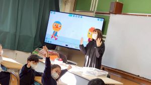 各クラス、寺村先生による英語タイムも楽しんでいます。言葉だけでなく、ジェスチャーも使って、表現にチャレンジ!
