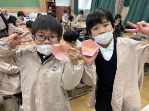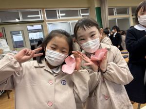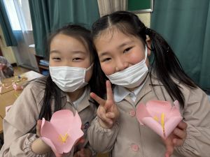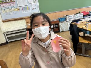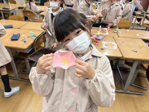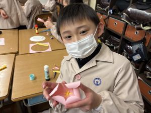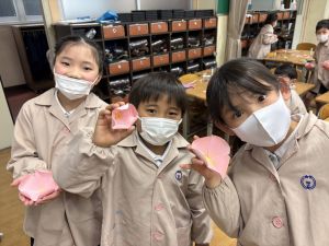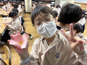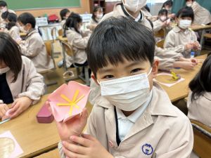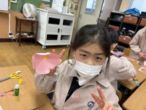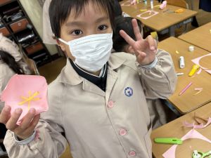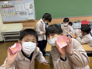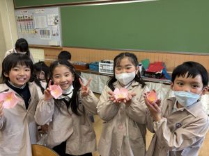 3組さんも梅の花を作りました!