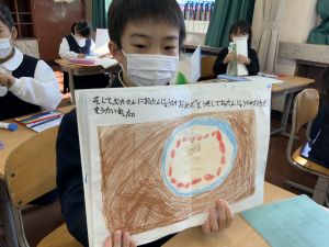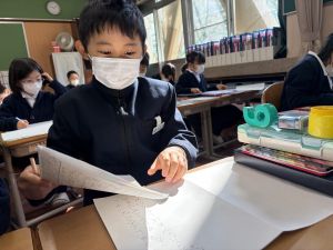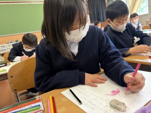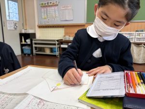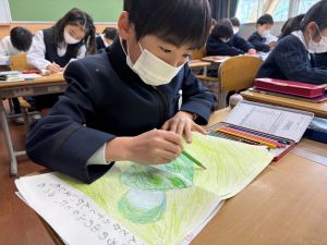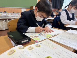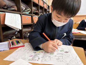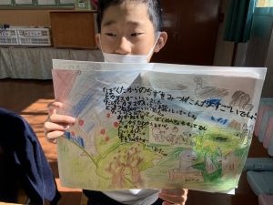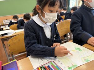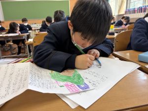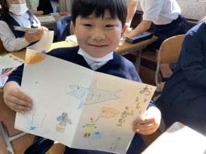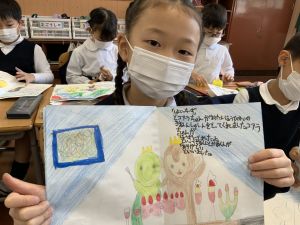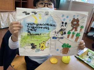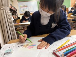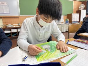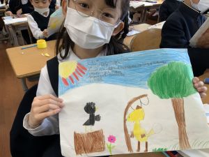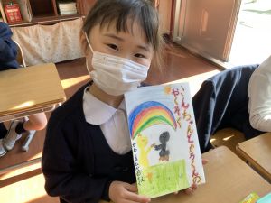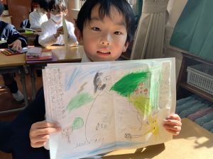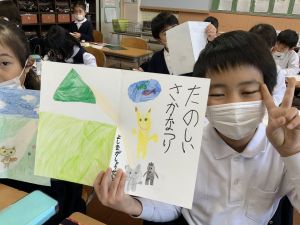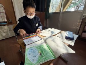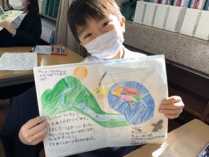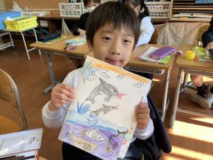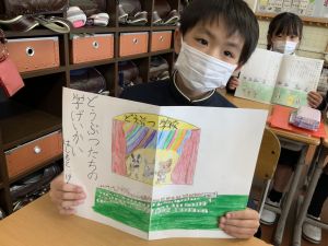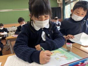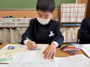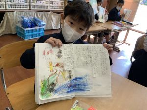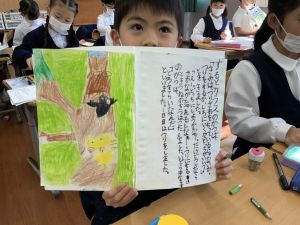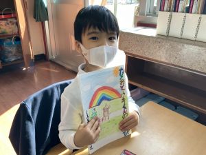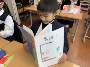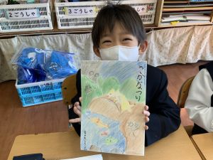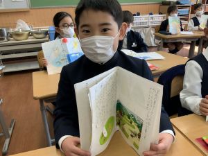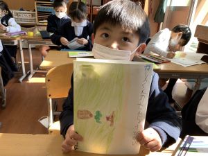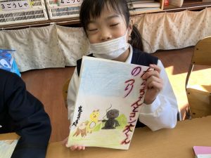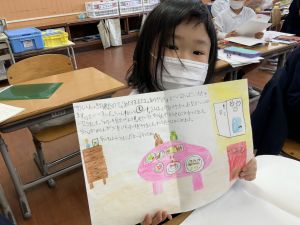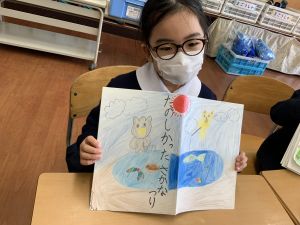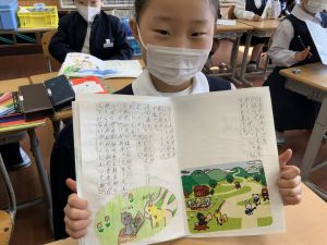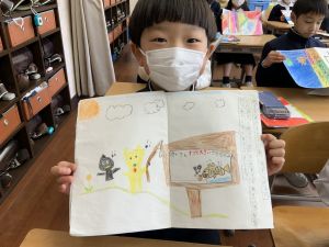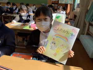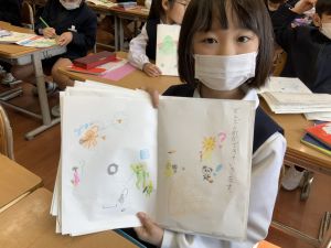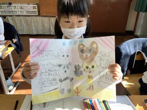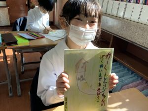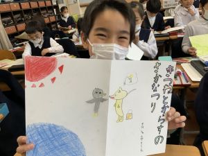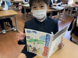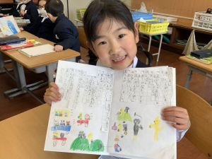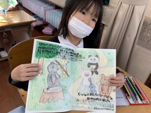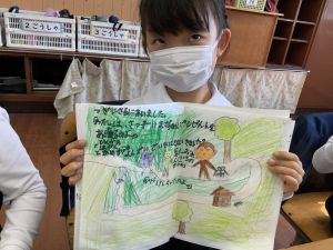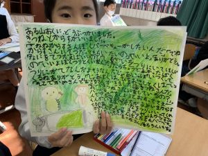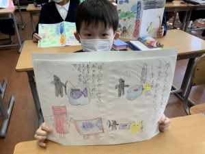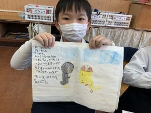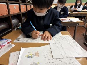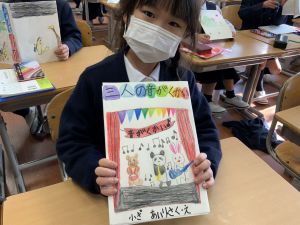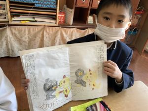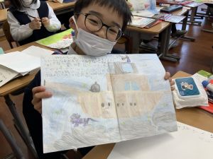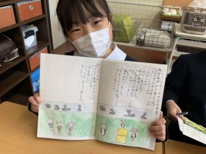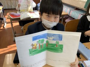 国語科『どんなおはなしできるかな?』の、絵本づくりもいよいよ完成が近づいてきました。