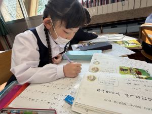 【本日の連絡】 ◯明日の時間割について 明日、1組と2組は算数の授業があります。算数の用意を持たせてください。 ◯ 授業の会 〜であいの会について〜 授業の会の初日、6日(金)13:50〜14:00 の時間に、参会される先生方に向けて、「Futen E’xpo 2025」のダンスを披露します。会場は 講堂 です。 当日、お迎えに来る予定の保護者の方も、講堂に入り観覧いただいてもかまいません。(金曜日は参会者が多くないので椅子が空いていると子どもたちも寂しいので・・・) なお、参会者の先生が多くフロアの座席が埋まっているようでしたら、2階ギャラリーへ上がり、観覧ください。