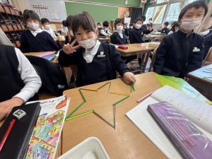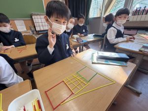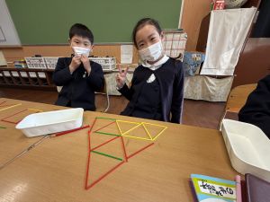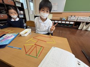2組はいろぼうを使って「かたちけんきゅうしょ」パート2をしました。