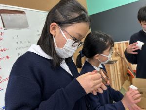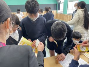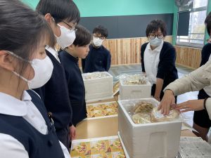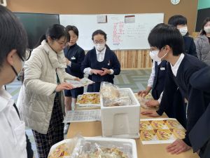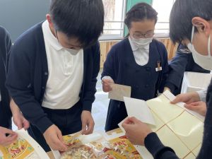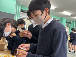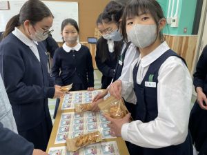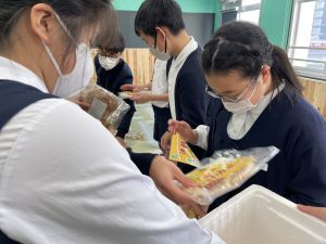 商品開発の活動も、明日からの販売に向けて最後の準備!業者の方から商品が届き、ラベルのシール貼りや明日の販売の打ち合わせをしました!