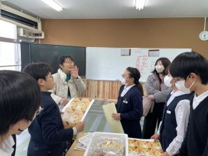 【連絡とお願い】 ①明日について 5時間授業ですが、15時10分ごろ下校予定です。 ②研究発表会について 学校より、6・7日の研究発表会についてお知らせがあります。授業終了後の動きや、お子様の着替えについて、いつもと異なります。こちらをご覧いただきますよう、よろしくお願いします。 ③研究発表会の販売ブースボランティアについて 以下の通り、変更点および追加の連絡がありますので、ご確認よろしくお願いいたします。 ・本日子どもたちにも連絡しておりますが、3組の子どもたちは13:45に「ひなまつルーム」に集合します。午後からの販売場所である2年1組に商品を運ぶためです。なお、1組、2組は13:45まで公開授業をしています。職員室横の階段を使わず、給食場横の階段を上がって、静かにひなまつルームに向かうよう、子どもたちに伝えておりますので、よろしくお願いいたします。 ・体験ブースのサポートでワークショップ「一番だし」に来て下さる保護者の皆様は、①エプロン、②三角巾、③マスクをお持ちください。 |