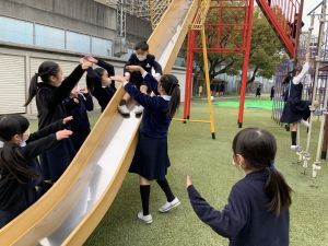 高学年時間割の日も増えてきたので、その日には、ベランダや鉄棒、ひなまつランドで楽しく遊んでいます。