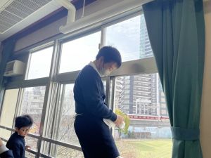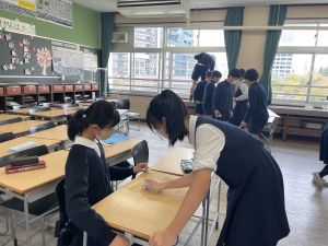 4時間目には、お客様をお迎えするために校内の清掃を行いました。これまでの5時間授業後の簡単清掃とは異なり、時間をかけて丁寧に取り組む姿が見られ、学校全体が気持ちよく整えられました!