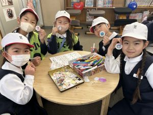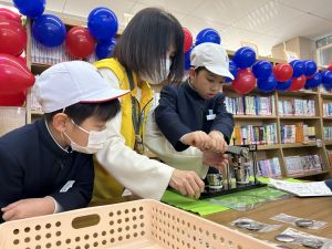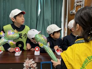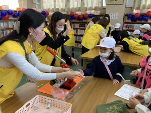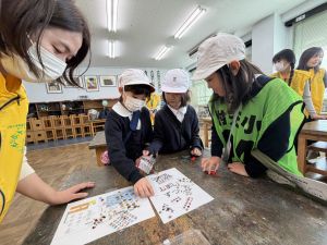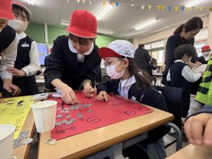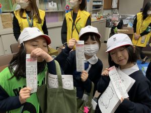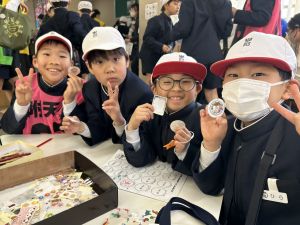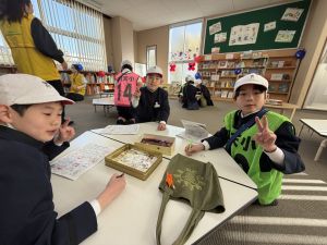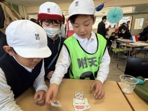 ゲームの説明、景品づくり、接客など、どれも丁寧で、1年生は飽きることなく次々と楽しんでいました。