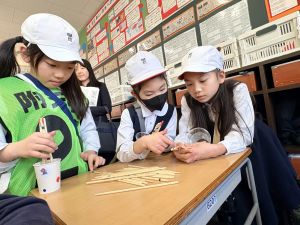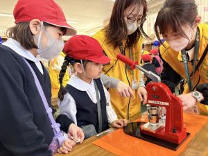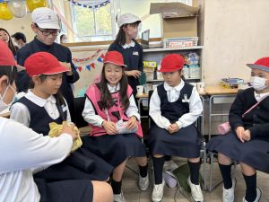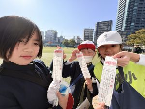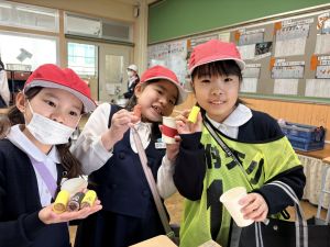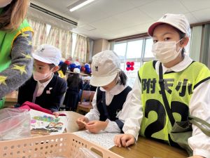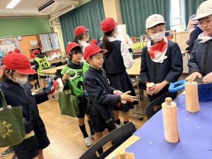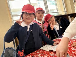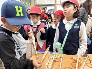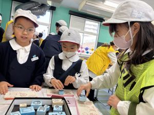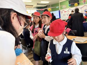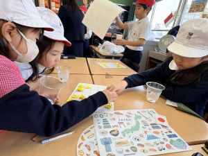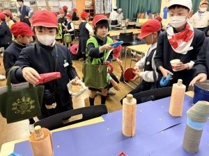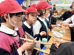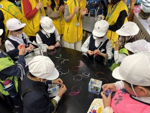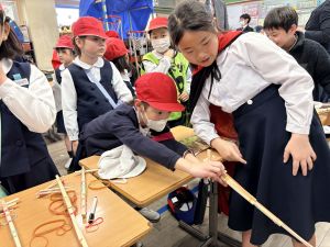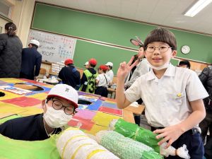 高学年のお兄さんやお姉さんのクラスの催し物を体験したり、PTAさんが準備してくださった物を作ったりして、おまつりを楽しんでいました。