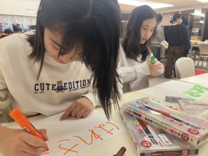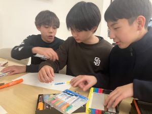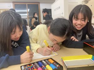 そこで、今日の学年タイムは時間がたっぷりあったので、有志のメンバーでポップ作りをしたりや購入された方が見るホームページの文面を考えたりしました。真剣にホームページの文言を話し合って考えたり、どのように商品をPRするかを工夫してポップを作ったりと商品販売へ向けて充実した時間を過ごすことができました。