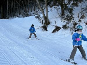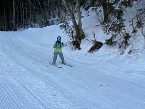 初心者コースから少しずつレベルアップし、色んなコースで滑り始めています。