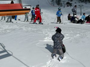 先生たちも滑って、みんなを探しに行きますがなかなか捕まりません。