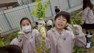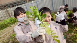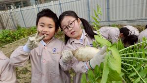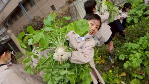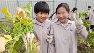 サイズは、巨大なものから、小さいものまで。子どもたちは、どのサイズが出てくるのか楽しみながら、ペアで『おおきな かぶ』を思い出しながら抜いていました。