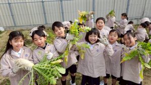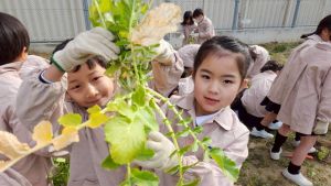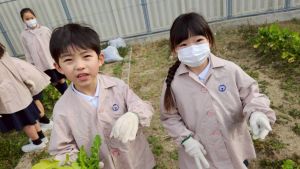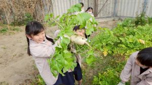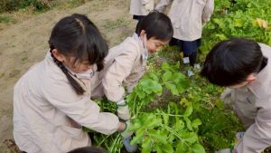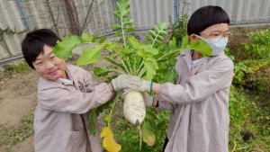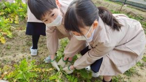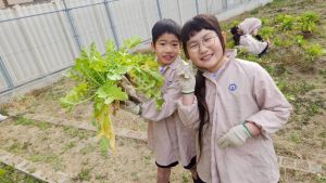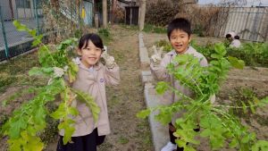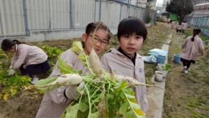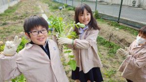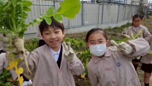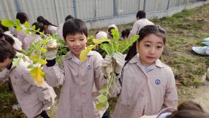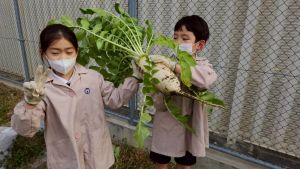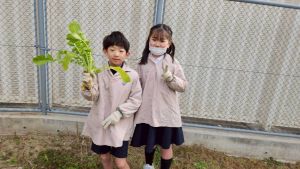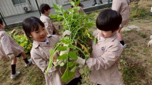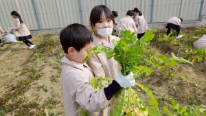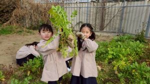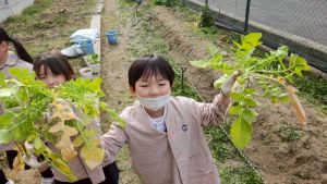 今回は、全員分あるのか分からなかったため、収穫後にじゃんけん大会を行いました!欠席の子どもちは、代打で私たち教員が行いました。大きいサイズは1人1本、小さいサイズは1人2本持ち帰ることができました。ちょっぴり、ほっとしました。