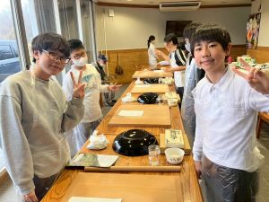 ここは中川さん宅に泊まる二つの班が合同で活動を行っていました。そば打ち体験をさせていただきました。その前には、夕食で食べる郷土料理「そば米雑炊」の準備をしていたようです。味見をさせていただきましたが、とても美味しかったです。