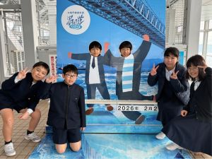 2026.02.27.STEAM trip.66 2026.02.27 6年生 渦の道にやってきました。 天気は曇り空ですが、、、海風の中、自然を体感しました。 そして、顔ハメパネルは、とりあえず、やっておかなくちゃということで。1枚写真を撮りました。 « 前へ 一覧へ 次へ » 関連する記事 03.02 最後の・・・!! 卒業まで、あと「8日」。 ※商品、完売しました!ありがとうございました!! 2026.03.02 6年生 145期生 教育後援会(1号会員)入会のお願い 2026.03.02 6年生 ドッヂボール大会、ルール公開! 2026.03.02 6年生 3月11日(水)防災給食デー食事内容について 2026.03.02 6年生 保護者専用 お知らせ 1年生 2年生 3年生 4年生 5年生 6年生 落とし物 各種募集 行事関係