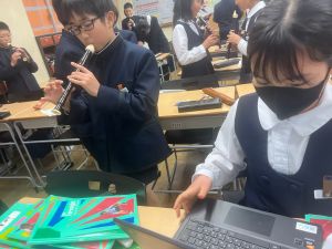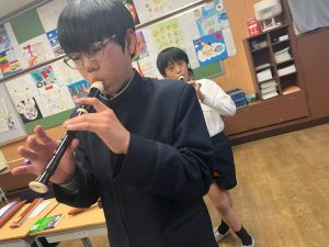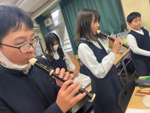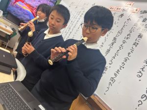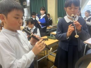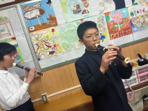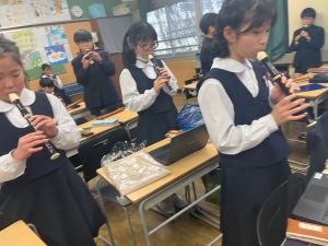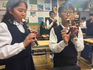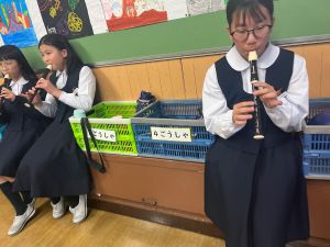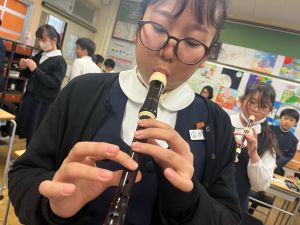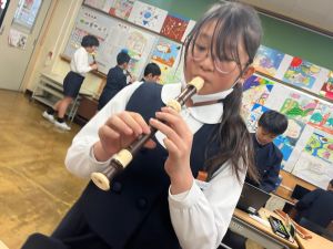 リコーダーの練習。金曜日の予行までに仕上げていきましょう。