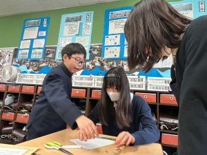 授業では貿易ゲームに挑戦しました。限られた資源や技術をどう生かすのか、どの国とどのように交渉するのか。仲間と作戦を立てながら、時には思うようにいかず悩みながらも、試行錯誤を重ねていました。
