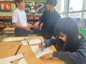 今日は社会の授業。なんと、森副校長先生にご指導いただきました。事前の告知はなしのサプライズ登場に、教室は「えっ?えっ?」とざわざわ。驚きながらも、森副校長先生のスペシャル授業に、いつも以上に目を輝かせて話を聞く姿が印象的でした。