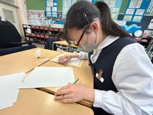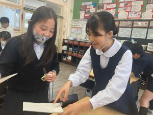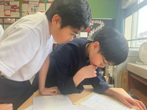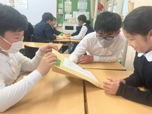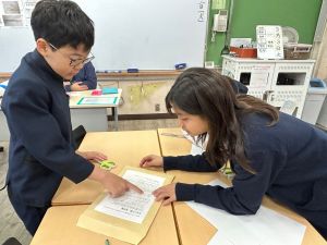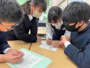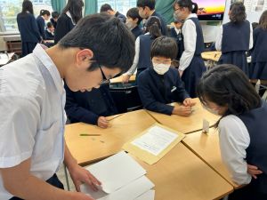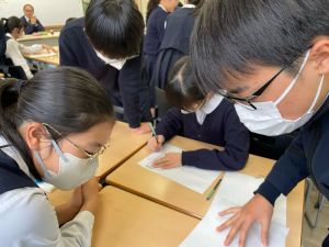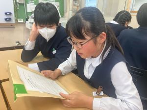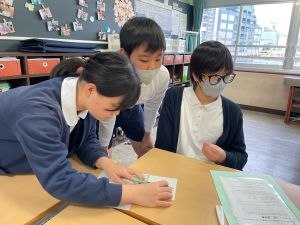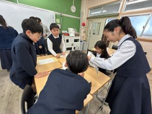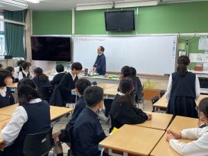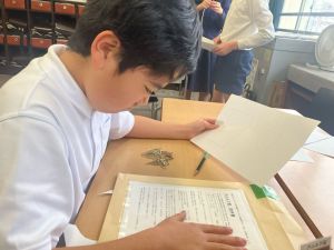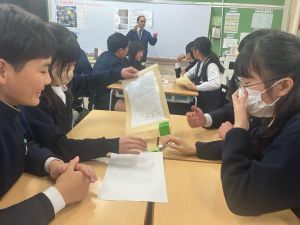 今日は社会の授業。なんと、森副校長先生にご指導いただきました。事前の告知はなしのサプライズ登場に、教室は「えっ?えっ?」とざわざわ。驚きながらも、森副校長先生のスペシャル授業に、いつも以上に目を輝かせて話を聞く姿が印象的でした。