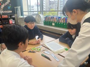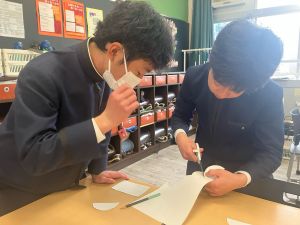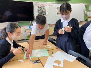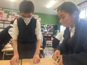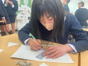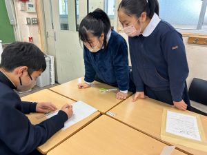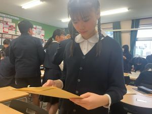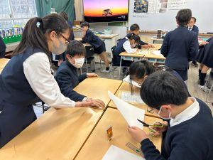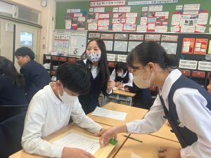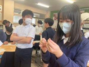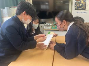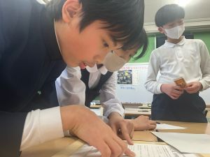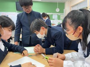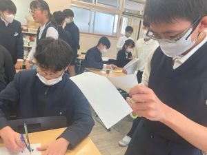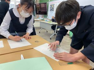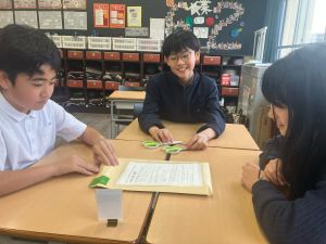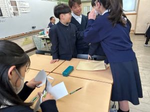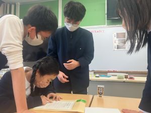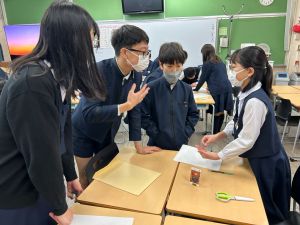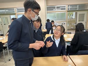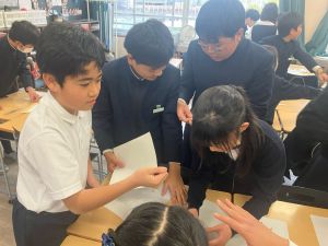授業では貿易ゲームに挑戦しました。限られた資源や技術をどう生かすのか、どの国とどのように交渉するのか。仲間と作戦を立てながら、時には思うようにいかず悩みながらも、試行錯誤を重ねていました。
