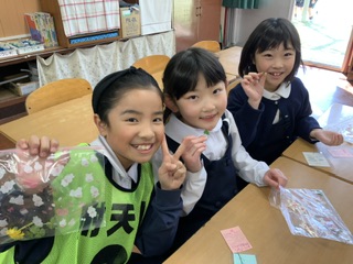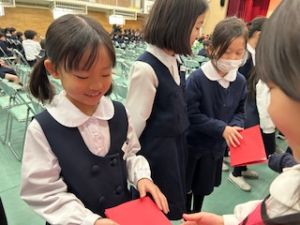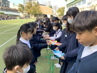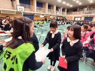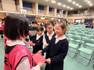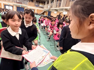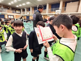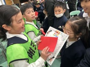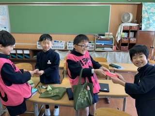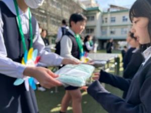 プレゼントをもらった3年生・6年生の嬉しそうな笑顔を見ると、子どもたちの気持ちがまっすぐに伝わったのだなと感じました。 「ありがとう」を形にして届けるって、すてきなことですね。