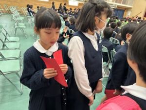 そんな皆さんへ、6年生には 世界にひとつだけのペンダント を、3年生には 気持ちを込めたお手紙 をプレゼントしました。