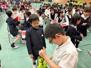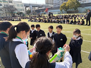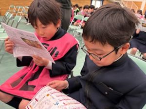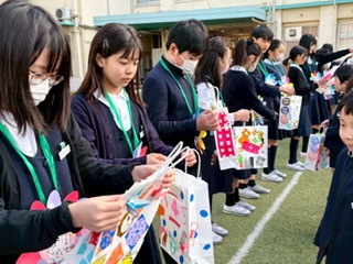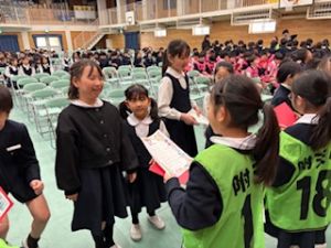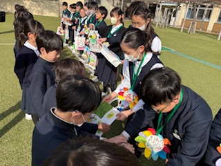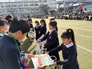 まずは、朝からお世話になった6年生を送る会でした。たくさんのことで学校を支えてくれた6年生に自分たちが作ったプレゼントとともに、ありがとうを伝えました。