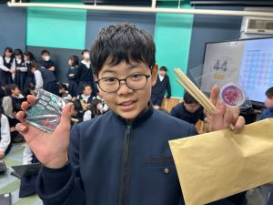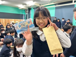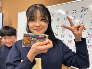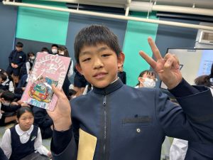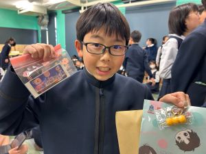 4時間目は最後のお楽しみ会ということで、「145ビンゴ大会」をしました!!今回は、卒業スペシャルバージョンということで、全員に景品が!!