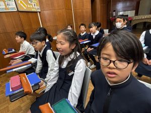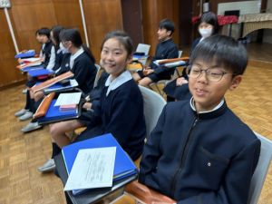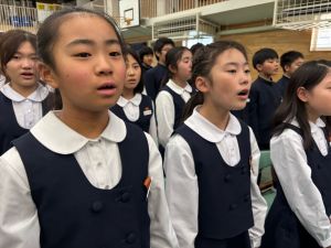 先週の卒業式予行を振り返り、これまで特に歌や送別の辞の練習を繰り返し行ってきました。