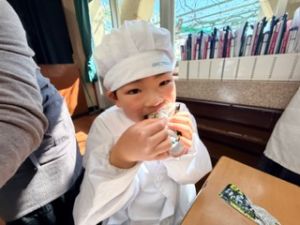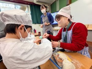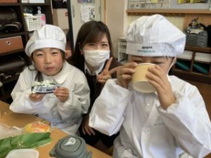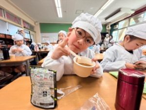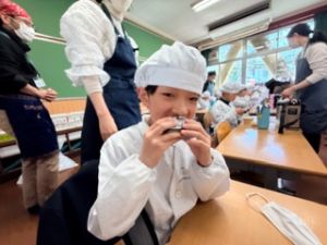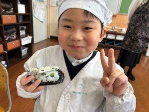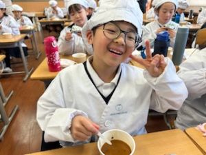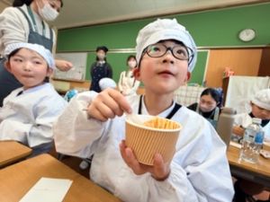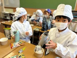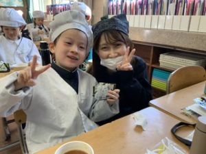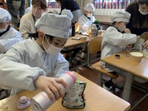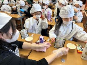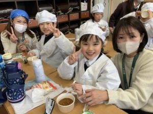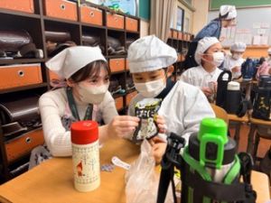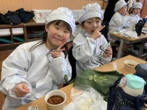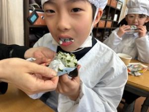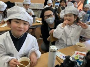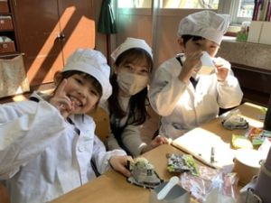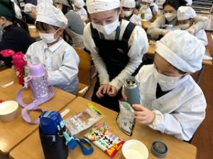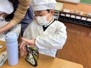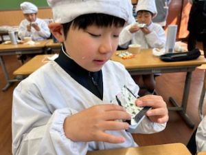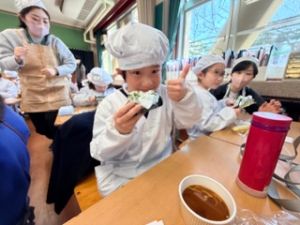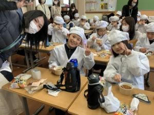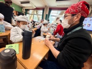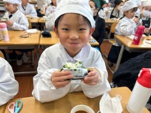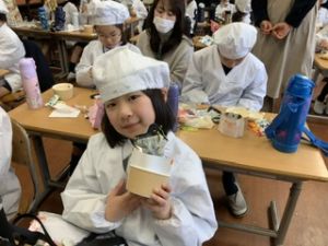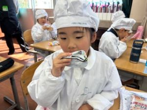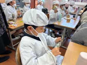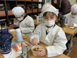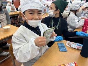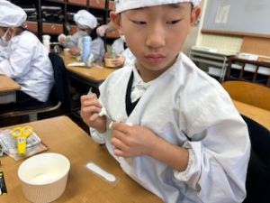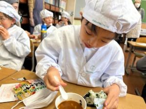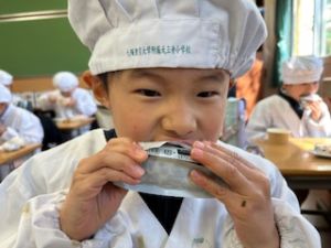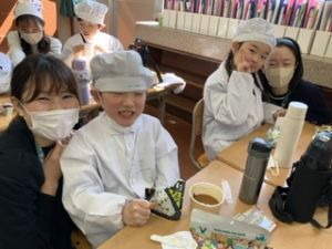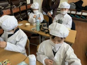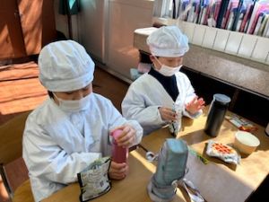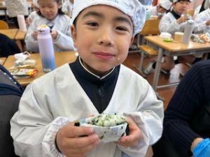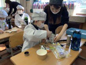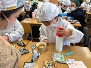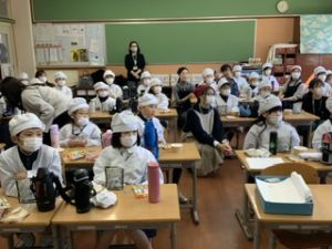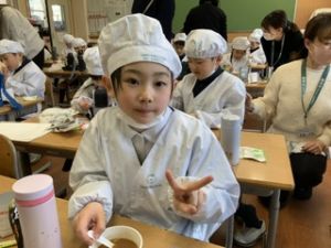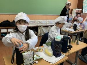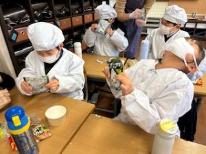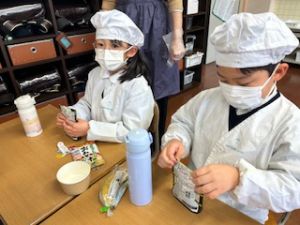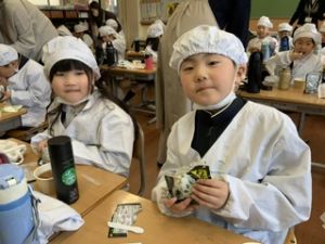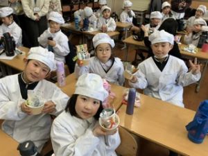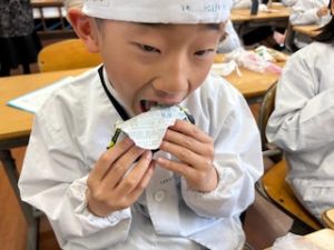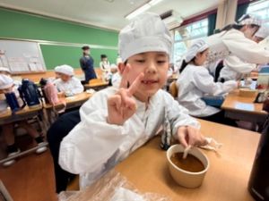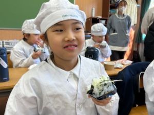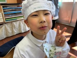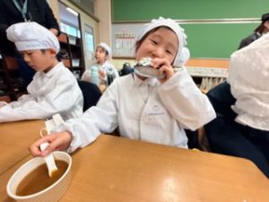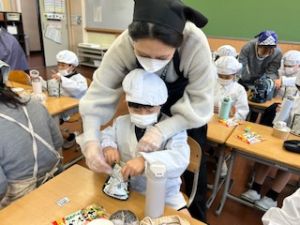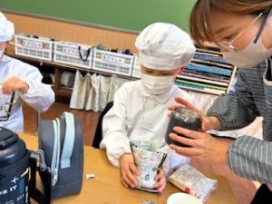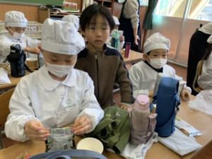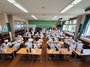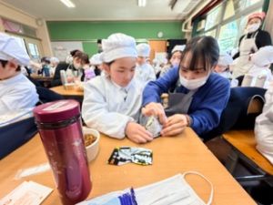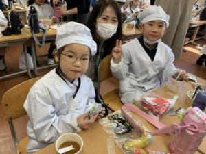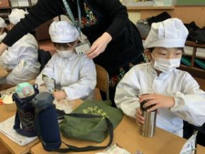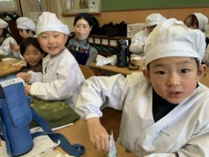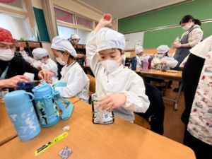 いつもの給食なら「ごちそうさま」をしている時間に、今日は「いただきます」になるくらい、準備にしっかり時間がかかりました。