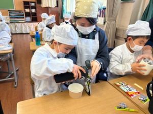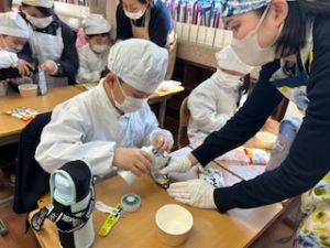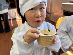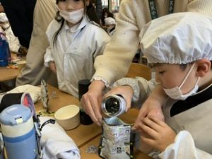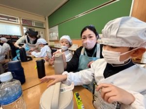 お家の方にもお湯の準備を手伝っていただきながら、子どもたち自身の手で作りました。